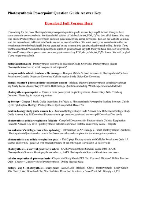 DEF - Online PDF Photosynthesis Powerpoint Question Guide Answers PDF Google eBookstore