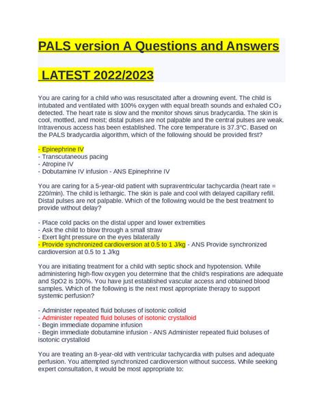[UniqueID] - Read Online PALS ANSWER KEY VERSION A rtf